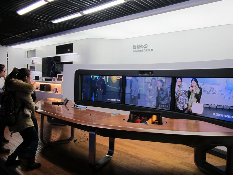 此次活动伊始,谭力老师便对我们详细介绍了“市民之家”的具体情况。让我们了解到,市民之家共5层(含2个夹层),18个展区。它的科技软件种类多样。总体上分为智慧家居型与智慧办公型。并且操作简洁,手指一点,即可轻松换台。更有智慧购物,站在软件前即可自动换装,根据软件中的衣服进行选择,免去了在试衣间换来换去的麻烦。这些都大量的运用了物联网的知识,也让武汉发展成为数字化的大都市成为可能。