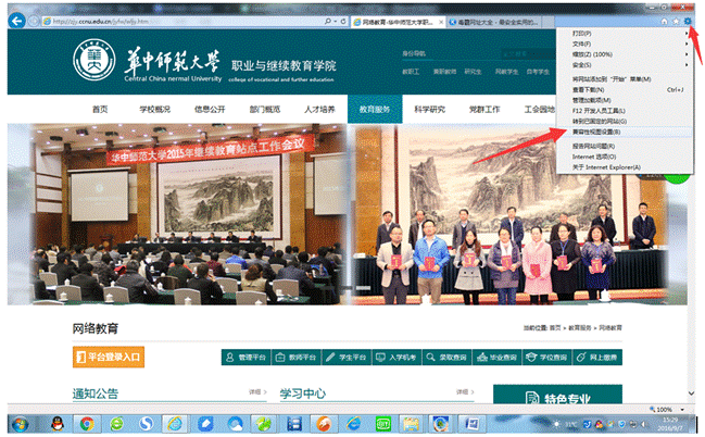 请登录http://zjy.ccnu.edu.cn/jyfw/wljy.htm考试,具体方法请仔细查看图片。