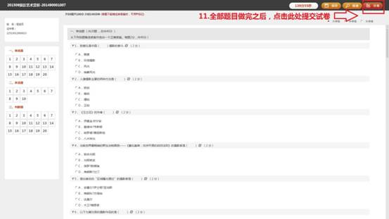 2、每门课程考试时间为140分钟,完成答题后考生提交试卷,如在规定时间内考生未完成答题或未能提交,系统将自动提交并给出考试成绩。