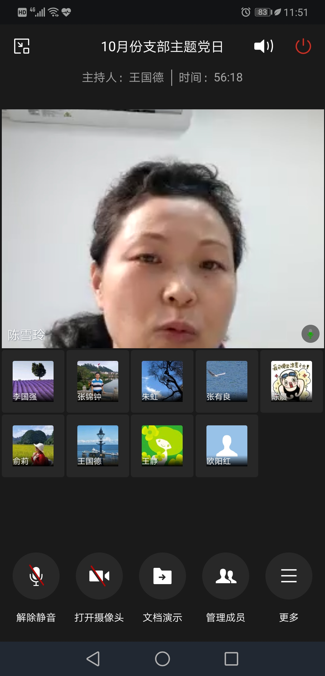 (通讯员:陈晨)11月16日上午,培训中心第四党支部通过企业微信视频会议的形式开展十月份主题党日活动,活动由党支部书记陈雪玲同志主持。