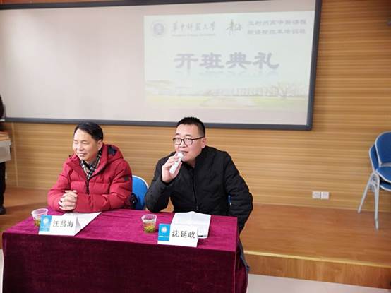 新年伊始,大美青海玉树藏族自治州的60位高中教师结束本学期教学后立即长途奔赴百年华师,走进生机盎然的桂子山,开启了新年的学习提升之旅。2019年1月16日上午8:30分,青海省“国培计划(2018)”乡村教师访名校及订单式专项培训-玉树州高中新课程新课标改革培训班的开班典礼在教师教育学院A513教室如期举行,华中师范大学培训中心(职业与继续教育学院)汪昌海副主任(副院长)受邀参加开班典礼并致欢迎辞。