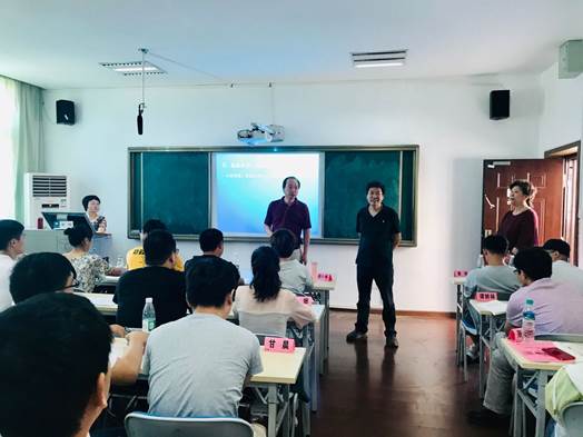 2019年7月25日上午课间休息时,湖北省“国培计划(2019)”非师范类新教师教学技能提升培训初中道德与法治项目培训教室大门推开了,华中师范大学培训中心(职业与继续教育学院)主任(院长)卢子洲走进课堂,身后跟随副主任(副院长)朱虹和教师培训办公室工作人员欧阳红。院长专程看望慰问大家来了!