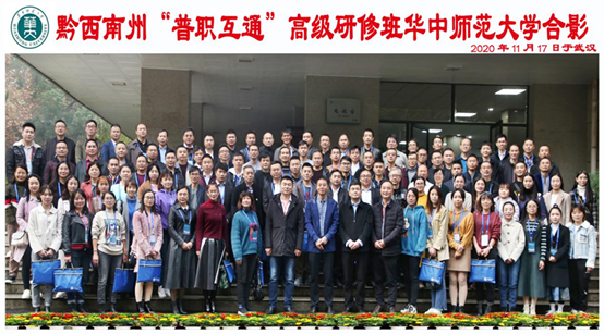 最后,在华中师范大学7号楼前,黔西南州“普职互通”高级研修班合影留念。“一拍即合”,拍的是老师们求知若渴的青春,合的是不忘初心,牢记使命的教育情。