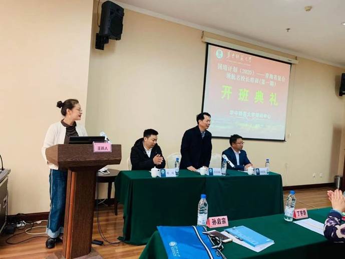 开班仪式由华中师范大学培训中心张琳老师主持,培训中心副院长汪昌海致欢迎辞。汪院长首先介绍了华师大培训中心的基本情况,对中心承办本次培训项目感到责任重大,同时也充满信心。他说,这份信心来自青海省教育厅对华师大培训中心学科师资的信任,来自各位学员校长良好的个人素质和自律精神。他希望全体学员用空杯心态专注学习,通过参观调研、跟岗学习将理论落脚实践,学有所获,学有所思,学有所获。