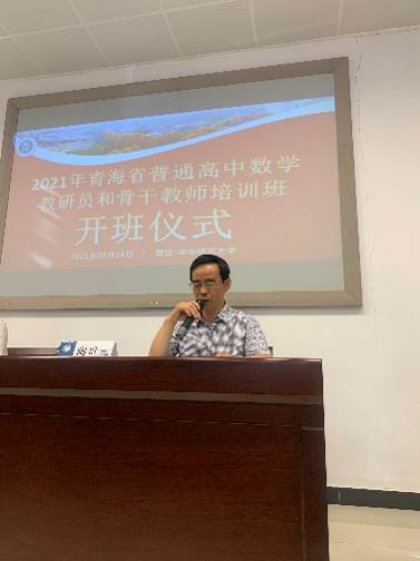 金秋九月,桂花飘香。青海省普通高中数学教研员和骨干教师一行51人,来到了美丽的桂子山——华中师范大学。9月16日上午8点30分, 2021年青海省普通高中数学教研员和骨干教师培训班在学校南门教育综合管理大楼一楼顺利开班。华中师范大学培训中心副主任、职业与继续教育学院副院长朱虹出席开班仪式,开班仪式由班主任徐老师主持。