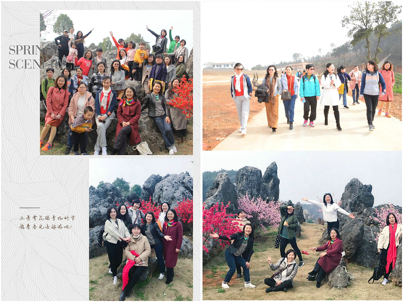 时值春暖花开,莺歌燕语,处处春意盎然。上午,走在郊外的小路上,伴着鸟鸣与阳光,呼吸着新鲜的空气,女同胞们感受着大自然的清新、恬静。在奇石边,在花丛中,大家笑靥如花,选取最佳角度,相互拍照留念。一些女老师还勇敢的尝试了丛林穿越的拓展项目。面对各种挑战,大家互相鼓励、齐心协力,在完成任务的同时,收获了友谊和快乐。