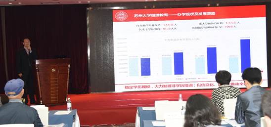 苏州大学继续教育学院缪世林院长在会上分享交流的继续教育信息化建设经验。