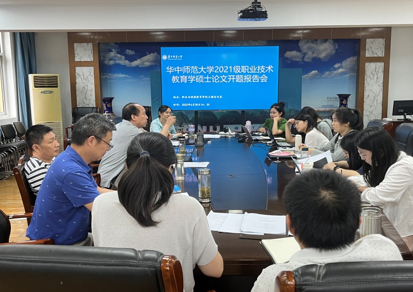 (通讯员:杨泽辉)2023年6月28日下午,华中师范大学2021级职业技术教育学硕士学位论文开题报告会在职业与继续教育学院三楼会议室举行。硕士研究生导师卢子洲、杨斌、周自波、蒋立兵、付从荣、杨珂和骆昌日等作为专家组成员出席开题报告会,5位2021级职业技术教育学硕士研究生向专家组进行了开题汇报,2022级全体职业技术教育学硕士研究生旁听了开题报告会。