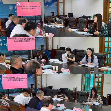 (通讯员:杨珂)2022年5月22日上午9点,华中师范大学职业技术教育学硕士研究生春季答辩工作在职业与继续教育学院三楼会议室成功举行。答辩会由湖北城市建设职业技术学院王佑华教授担任答辩主席,由华中师范大学卢子洲研究员,周自波教授,杨斌教授,蒋立兵副教授,付从荣副教授等担任答辩委员。本次答辩对象为2019级职业技术教育学专业硕士研究生3人,学院2020级及2021级职业技术教育学硕士研究生旁听了此次答辩。本次答辩严格按照学校研究生答辩工作规定开展。