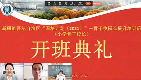 华中师范大学培训中心朱虹副主任(华中师范大学职业与继续教育学院副院长),新疆维吾尔自治区“国培计划(2021)”—骨干校园长提升培训班(小学骨干校长)全体学员连线参加。开班典礼由班主任周海燕老师主持。