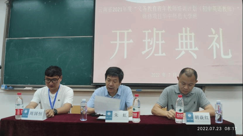 (通讯员 王颖)7月23日上午,云南省2021年义务教育青年教师培训计划(初中英语)研修项目华中师范大学班正式开班。华中师范大学培训中心(职业与继续教育学院)朱虹副主任(副院长)、教师培训部胡焱红部长、班主任团队以及近200名来自云南全省各地的初中英语教师出席开班仪式。班主任团队成员柳澳鲜主持开班仪式。