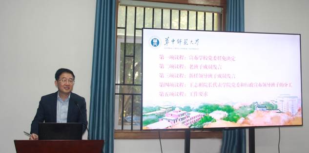 王志彬主任感谢四位老班子成员多年来的辛勤工作,代表中心(学院)党委和行政宣布新领导班子分工。看到新来的班子成员意气风发、斗志昂扬,他相信一定能够做好交接工作、提升战斗力,推动中心事业高质量发展。