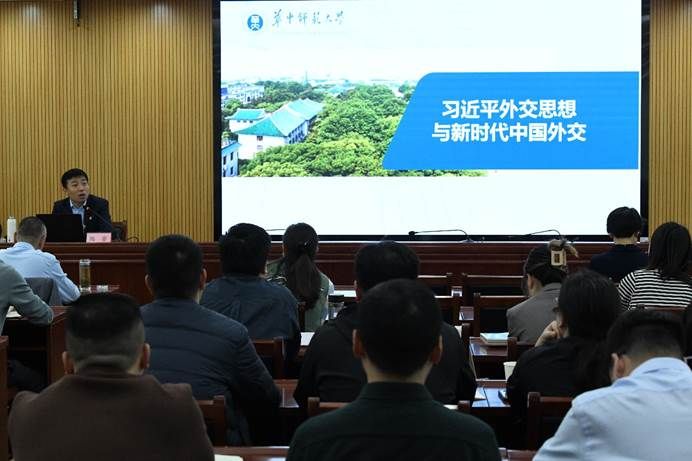 共享优质课程是此次合作的重要内容,宜昌之行我校也带来了湖北省干部教育培训好课程。政治与国际关系学院陈菲副教授以《学习贯彻习近平外交思想,深刻把握当前国际形势与中国特色大国外交战略》为题,为湖北三峡干部学院全体教职工做专题报告,通过理论结合案例的生动讲解,展现了新形势下的大国外交方略,得到大家一致好评。