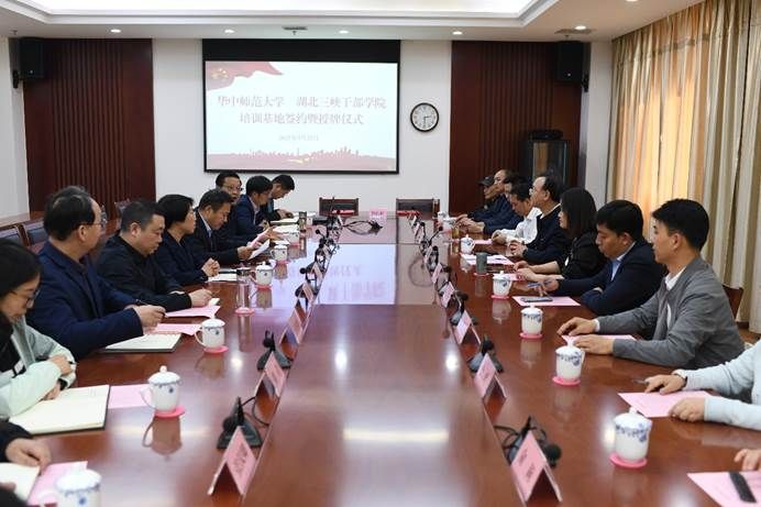 3月25日下午,双方在湖北三峡干部学院举行培训基地签约暨授牌仪式。湖北三峡干部学院常务副院长邹青松,副院长周道成、杨成珍、何迪,我校培训中心党委书记林更茂、副主任李娜出席仪式。