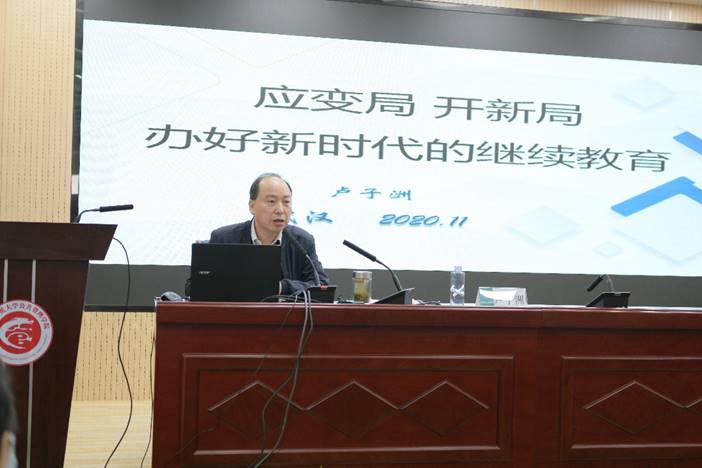 培训中心(职业与继续教育学院)主任(院长)卢子洲以“应变局 开新局 办好新时代的继续教育”为主题从2020年继续教育工作回顾、当前继续教育的形势与政策、关于我校继续教育的几点思考等三个方面作了会议报告,深入解读并剖析了新时代继续教育工作的形势与任务,提出了与各合作单位共同努力、积极应变、力争化危为机的殷切希望。