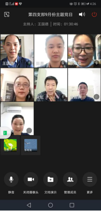 (通讯员 王国德、俞莉)9月27日下午,培训中心第四党支部通过企业微信视频会议的形式开展九月份主题党日活动,活动由党支部书记陈雪玲同志主持。