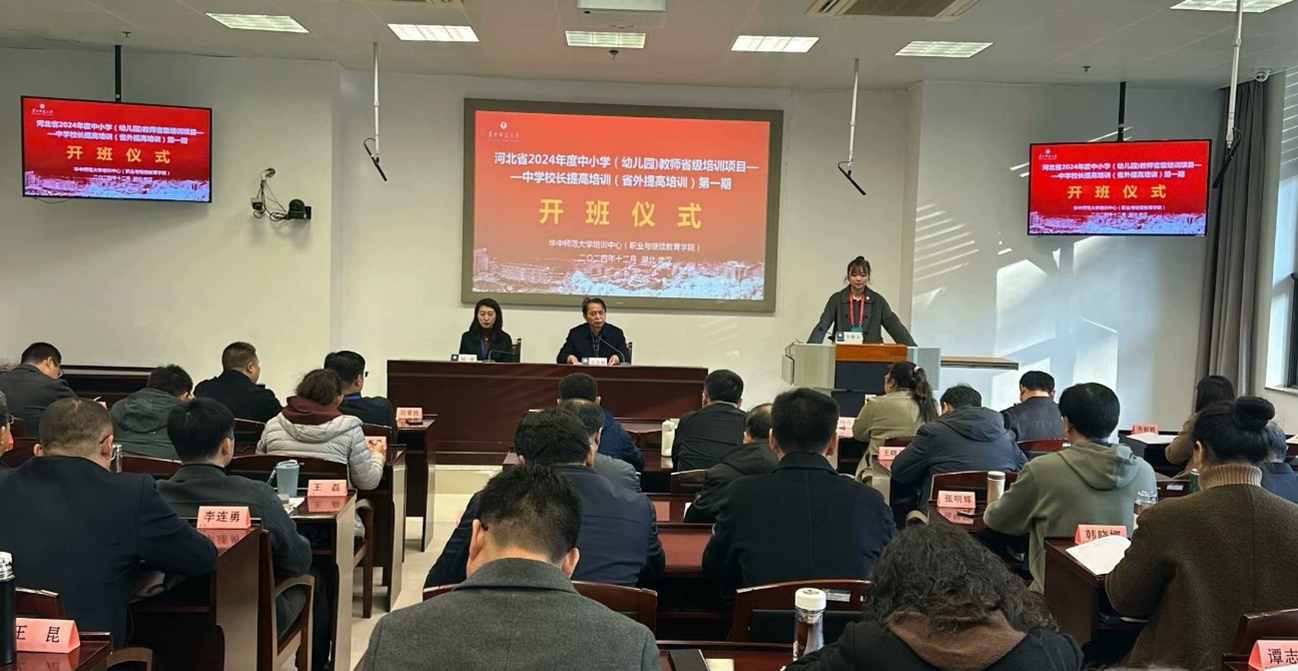 (通讯员:刘洋 揭丽 秦立全)2024 年 12 月 1 日上午,河北省2024年度中小学(幼儿园)教师省级培训项目——中学校长提高培训(省外提高培训)第1期在我校管理教育综合楼隆重举行。华中师范大学培训中心专职组织员汪昌海副主任出席仪式并发表热情洋溢的致辞,向参加本次开班典礼的五十七名优秀燕赵校长表示热烈欢迎。