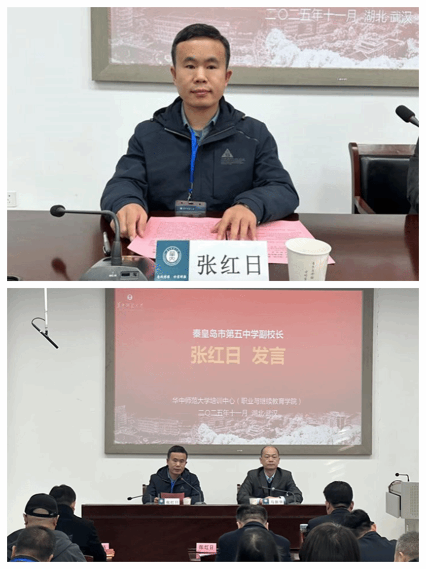 学员代表、秦皇岛市第五中学副校长张红日发言。他首先对河北省教育厅与华中师范大学搭建的高端学习平台表示衷心感谢。他表示,置身于武汉这座英雄之城,求学于华中师大这所底蕴深厚的学府,全体学员心中充满了豪情、敬意与期待。他代表全体学员郑重承诺:定将严守纪律,潜心向学,在交流研讨中碰撞思想火花,在实践分享中互学互鉴;努力将先进的教育理念与科学的管理方法带回工作岗位,转化为推动河北高中教育高质量发展的强大动力。