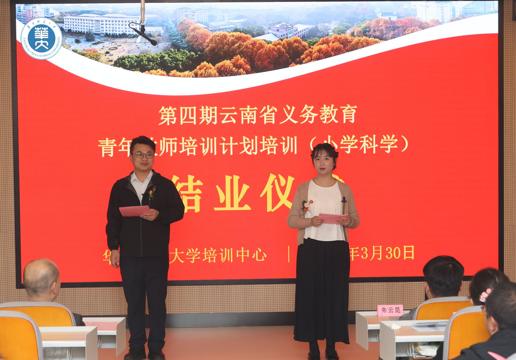 华中师范大学培训中心主任马新华出席仪式并发表讲话。他代表承训单位向顺利结业的学员表示衷心祝贺,并与全体学员共同见证了这一庄重而温暖的时刻。仪式由威信县麟凤镇中心小学教师卓家发、宾川县钟英乡中心完小教师那靖安共同主持。