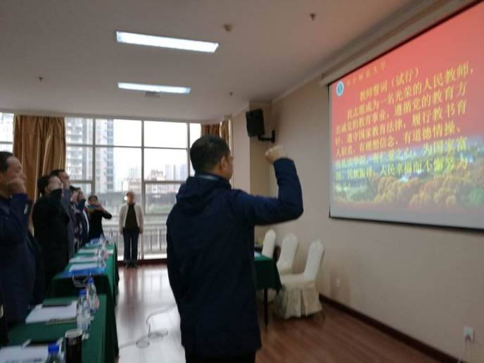 学员代表、西宁市共和镇中心学校孙启宗校长发言,他表示将继续发扬求知、进取、团结的精神认真学习,用心积累,以昆仑山的高度,领航人的标准让家乡的教育事业行以致远。全体学员在孙校长的带领下宣读教师誓词,做出庄严宣誓。