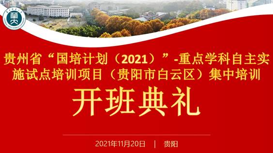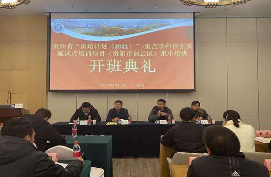2021年11月20日下午14时,贵州省“国培计划(2021)”- 重点学科自主实施试点培训项目(贵阳市白云区)第一期集中培训开班典礼在贵州省贵阳市贵州和润锦雅酒店16楼会议室顺利召开。