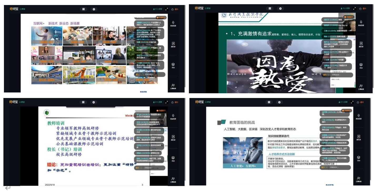 由于国内防控形势严峻复杂,项目经申请转为线上实施。为此,项目工作组迅速组织线上培训,搭建学习平台,将专家授课和学员交流、互动紧密结合起来。在项目课程安排方面,项目工作组聘请了国内知名职教专家、培训管理专家,保障项目实施中的课程能够涵盖职业教育和职教培训的特点,揭示和探索职业教育规律。在授课形式方面,项目通过专家讲座、案例教学、研讨交流、学员方案设计、专家集体诊断点评等形式,充分发挥线上多媒体教学的优势,引导学员积极参与课题讨论,充分交流,解决工作中的疑难问题。