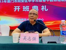 来自同安区教师进修学校吴志强校长在讲话中提出骨干“四”引领:师德师风、学科教学能力、教育科研态度、家校共育。他希望参训老师能够围绕“四”引领,认真完成此次培训的任务。同时,他向学员们提出了此次培训的“三”要求,既是:确保安全、认真学习、敢于实践。他希望大家能够不忘初心,敢于践行,学有所获。