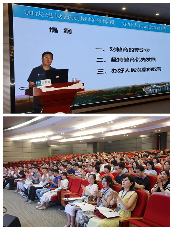 在简短而隆重的培训动员会后,华中师范大学田友谊教授为学员带来《构建高质量教育体系办好人民满意的教育》专题讲座。田教授从如何对新时代教育进行新的定位,坚持教育优先发展的原因和做法,如何办人民满意的教育几个角度进行了深入阐述。在培训过程中,学员们全神贯注,仔细记录培训要点,并表示会在日常工作中做好学习成果转化。