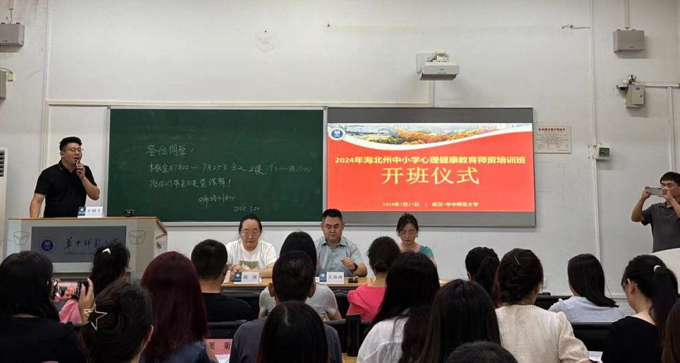 (通讯员:谢卫萍)为助力心理健康教育教师专业能力、教学能力的提升,进一步打造一批高素质、专业化的心理健康教育教师队伍,2024年7月21日,海北州中小学心理健康教育师资培训班在华中师范大学顺利开班。华中师范大学培训中心副主任吴海涛、海北州教育局教研员尹芸霞及参训教师代表高娃老师出席开班仪式并发言。来自海北州四县的50位中小学心理健康教育骨干教师参加了此次开班典礼。
