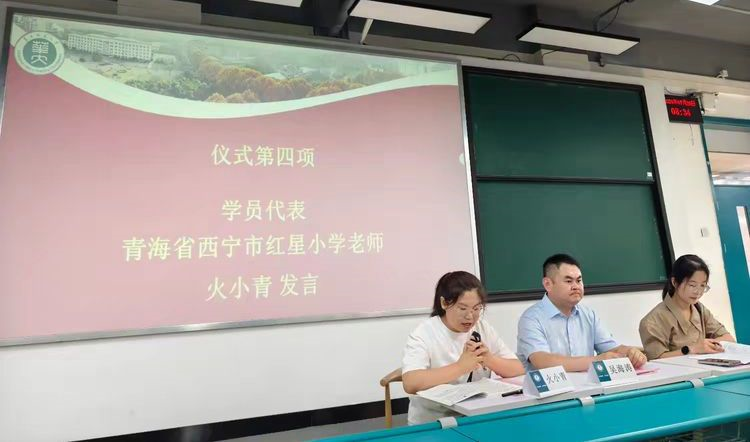 学员代表火小青老师发言,她代表全体学员表示,将珍惜这次难得的学习机会,严格遵守培训纪律,认真学习,积极交流,努力提升自身的思政教育能力和素养,将所学知识运用到实际教学中,为推动思政教育事业的发展贡献力量。