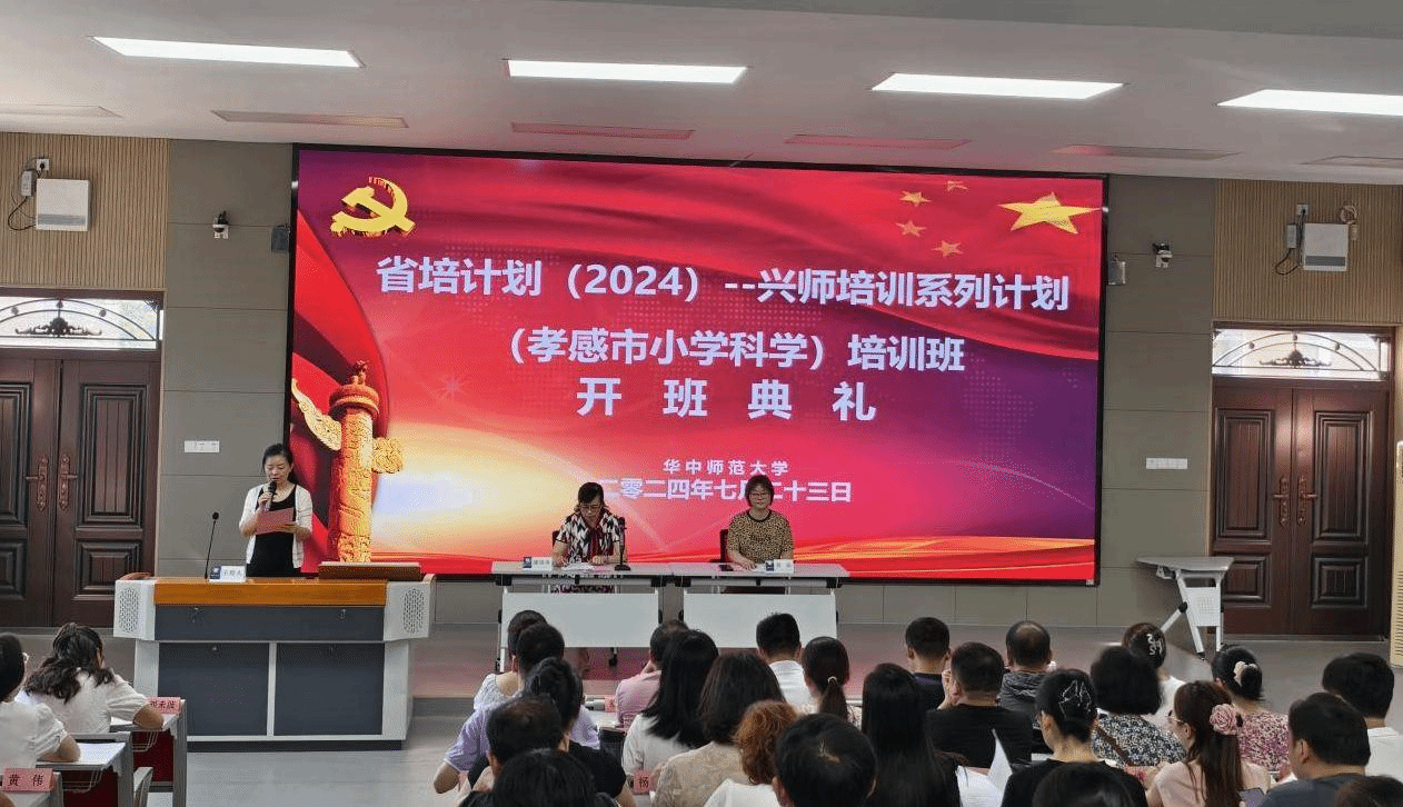 (通讯员:叶会明、钱洁、魏瑶、褚宁君)2024年7月23日上午,2024 年“省培计划”——兴师培训系列计划(孝感市小学科学)”项目在华中师范大学开班。华中师范大学培训中心副主任潘珞琳出席仪式并讲话,班主任彭咏梅、张敏老师,以及 70 位参训学员共同参加本次开班典礼。开班典礼由班主任彭咏梅老师主持。