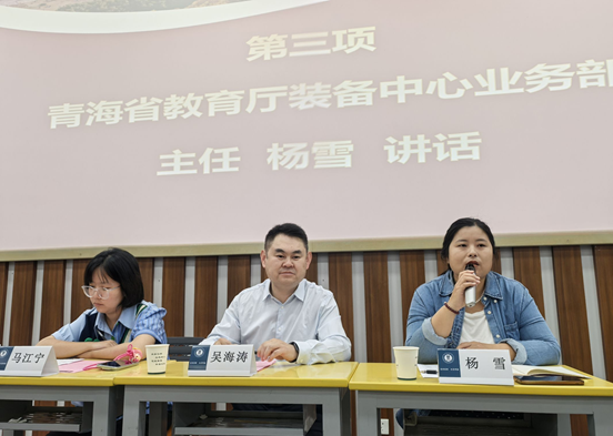 青海省教育厅装备中心业务部主任杨雪发表讲话。她对华中师范大学为此次培训所做的精心准备表示衷心感谢,并强调提升小学科学实验教学水平的重要性。杨雪主任指出,小学科学实验教学是培养学生科学素养的关键环节,对于推动教育的高质量发展具有重要意义。她要求学员们以饱满的热情和积极的态度投入培训,不断提升实验教学能力和水平,全力推动青海省小学科学教育事业走向兴盛。