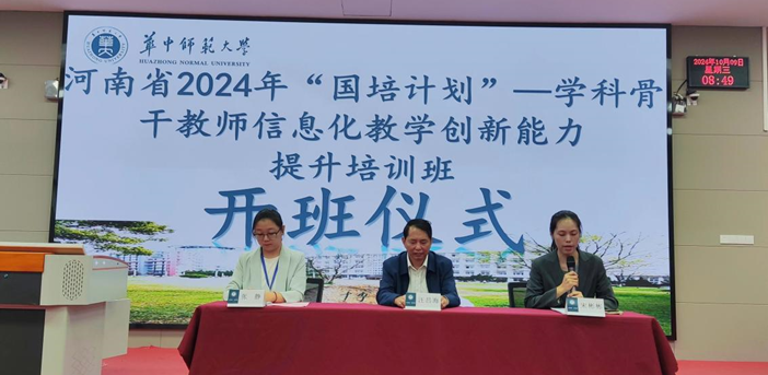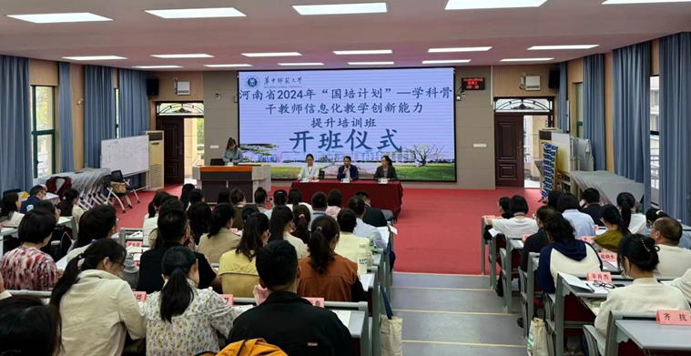 (通讯员:宋彬彬、丁腾阁)为汇聚全省教育精英,共筑智慧教育信息化教学新生态,2024年10月9日上午,河南省2024年“国培计划”——学科骨干教师信息化教学创新能力提升培训项目的开班仪式在华中师范大学举行,标志着一场教育信息技术与学科教学深度融合的探索之旅正式启航。华中师范大学培训中心副主任汪昌海出席本次开班仪式,河南省各地市区的100余名初中生物与初中数学学科的骨干教师参加开班典礼。