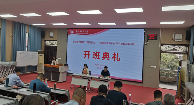 (通讯员:丁学民)2024 年 10 月 9 日上午,“国培计划2024”武威市市级农村初中骨干校长培训项目开班典礼在华中师范大学七号教学楼隆重举行。华中师范大学培训中心副主任潘珞琳出席仪式并发言,班主任陈迪老师、张敏老师和武威市三县一区的 55 名初中骨干校长共同参与开班典礼。开班典礼由班主任陈迪老师主持。