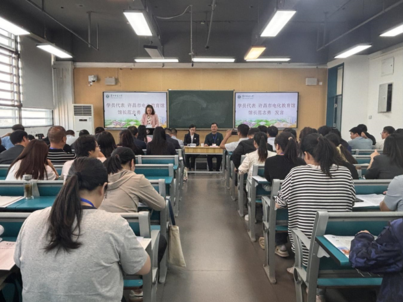 许昌市电化教育馆馆长范志勇作为学员代表发言。他表示自己作为教育信息化发展的参与者、见证者、受益者,希望借助本次学习良机,学习先进的教育教学理念,通过这次培训做到学有所思、学有所悟、学有所得,深刻理解国家教育信息化政策,掌握信息化管理的先进理念与方法,推动学校管理模式与育人方式的创新。