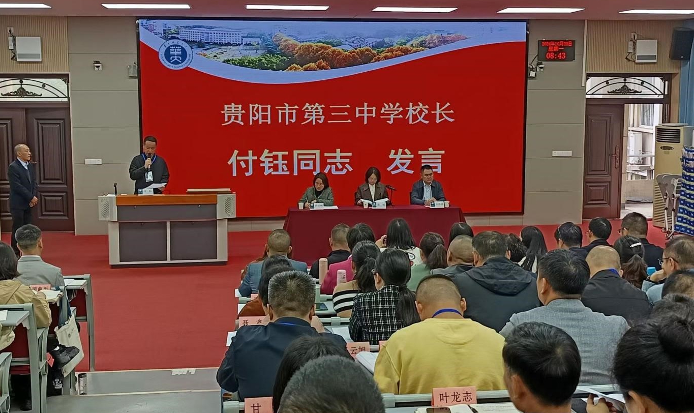 贵阳市第三中学校长付钰代表全体学员发言。他表示在接下来的培训中,将以开放的心态、严谨的态度,虚心向专家和老师们请教,认真聆听每一次讲座,积极参与每一次研讨,主动分享自己的思考和感悟,共同探讨解决问题的有效途径,并以此次培训为契机,奋力书写观山湖区基础教育事业更加辉煌的明天。
