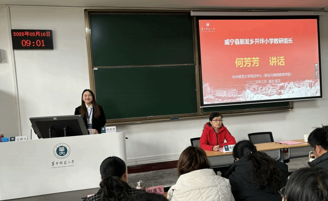 (通讯员:柴英 彭咏梅 李卉)2025 年 3 月 16 日,贵州省威宁县“国培计划(2024)”——整县推进培训项目小学英语骨干教师培训班开班典礼在华中师范大学7号教学楼正式启动。此次培训旨在提升威宁县小学英语骨干教师的专业素养和教学能力,推动当地小学英语教育的高质量发展。华中师范大学培训中心副主任潘珞琳出席开班典礼并致辞,来自威宁彝族回族苗族自治县各小学的 100 位英语骨干教师参加了此次典礼。