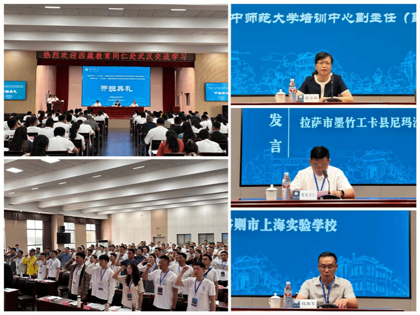 (通讯员:王兵 赵贺 辛亚莉)江城六月荷风起,教育新程正扬帆,桃李芬芳待绽放。为全面贯彻落实党的教育方针,扎实推进民族地区教育高质量发展,着力加强西藏自治区小学领导队伍专业化建设,提高教育教学管理水平,由西藏自治区教育厅主办,华中师范大学承办的“国培计划”(2025年)--西藏自治区小学教学副校长教学领导能力提升培训(一)和“国培计划”(2025年)--西藏自治区小学教务主任教学管理能力提升培训班于2025年6月在我校顺利开班。本次培训采用"理论+研学""讲授+研讨"的培训模式,重点围绕新时代基础教育改革、学校教学管理创新、教育教学质量提升等核心内容展开系统培训。来自全区各校的100位小学教务主任和教学副校长参加了本次培训。