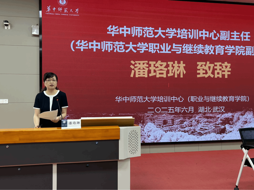 华中师范大学培训中心副主任潘珞琳在开班致辞中热烈欢迎西宁市教育同仁的到来。她深刻阐述了此次培训的重大意义,指出这是深化东西部教育协作、促进优质教育资源共享、推动区域教育均衡发展的重要举措。潘珞琳副主任着重介绍了华中师范大学深厚的教育底蕴、顶尖的师资力量以及在教师培训领域的显著成就,表示本次培训将紧密围绕西宁市基础教育发展需求,整合校内外优质资源,为学员量身打造“高规格、强实践、重引领”的培训体系。她殷切期望全体学员珍惜机遇、潜心研学、深度互动,将前沿的教育理念、科学的教学方法和丰硕的学习成果带回西宁,切实发挥“种子”教师的作用,辐射引领全市小学教师的专业成长,共同提升西宁市基础教育的质量。