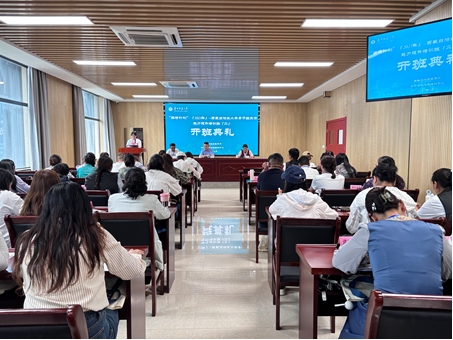 (通讯员:罗文静 王兵)当岁月的车轮滚滚向前,时代的浪潮奔腾不息,教育始终是推动社会进步、铸就民族未来的基石。在国家教育战略的宏伟蓝图下,西藏自治区的小学教育肩负着培养民族未来的重要使命,正不断迈向新的征程。2025年6月9日上午,“国培计划”(2025年)——西藏自治区小学骨干班主任能力提升培训(二)在我校顺利开班。华中师范大学培训中心副主任吴海涛出席开班仪式并致辞,西藏自治区各小学50位骨干班主任齐聚一堂,共同为西藏小学教育高质量发展注入强大动力。