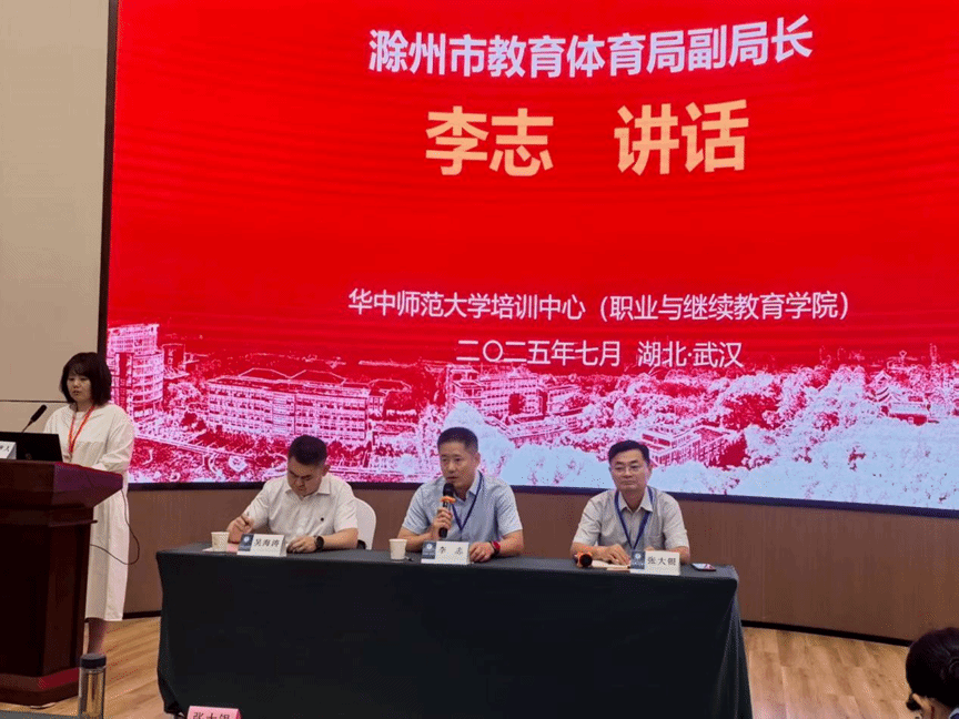 (通讯员:陶彦 王婧 张敏)2025年7月22日上午,“滁州市中小学(幼儿园)继续教育管理干部高级研修班”开班典礼在华中师范大学顺利举行。滁州开放大学党委书记张大银、滁州市教育体育局副局长李志、华中师范大学培训中心副主任吴海涛出席典礼并致辞。来自滁州市各县(市、区)教育体育局继续教育分管负责人、教师进修学校校长及县级开放大学校长共55位学员参加培训。