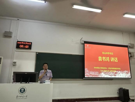 宜昌市东山中学书记袁书鸿是本次培训班的带队教师。他代表全体参训学员,对华中师范大学的精心筹备表示衷心感谢;勉励大家更新教育理念,以开放的心态汲取新思想、新方法,牢固树立终身学习意识;并指出,新时代教育的内涵日益丰富、外延不断拓展,希望教师们在培训中深化对教育的理解,践行教育家精神,坚守育人初心,追求更高教育理想,为培养全面发展的学生贡献智慧和力量。