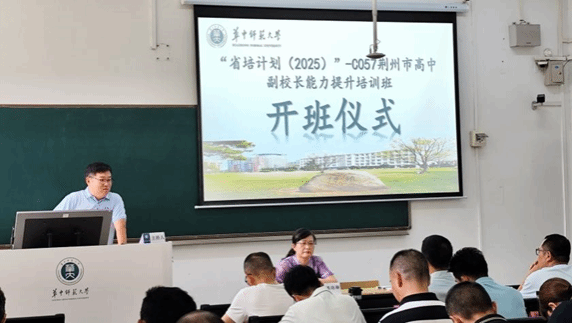 (通讯员:潘磊 陈迪 李千)为锻造一支教育理念先进、管理能力突出的高素质高中副校长队伍,2025年7月18日上午,“省培计划(2025)”——荆州市高中副校长能力提升培训班开班仪式在华中师范大学举行。华中师范大学培训中心副主任潘珞琳出席仪式并致辞,来自荆州市的40名高中副校长参加仪式,开启为期10天的集中研修。