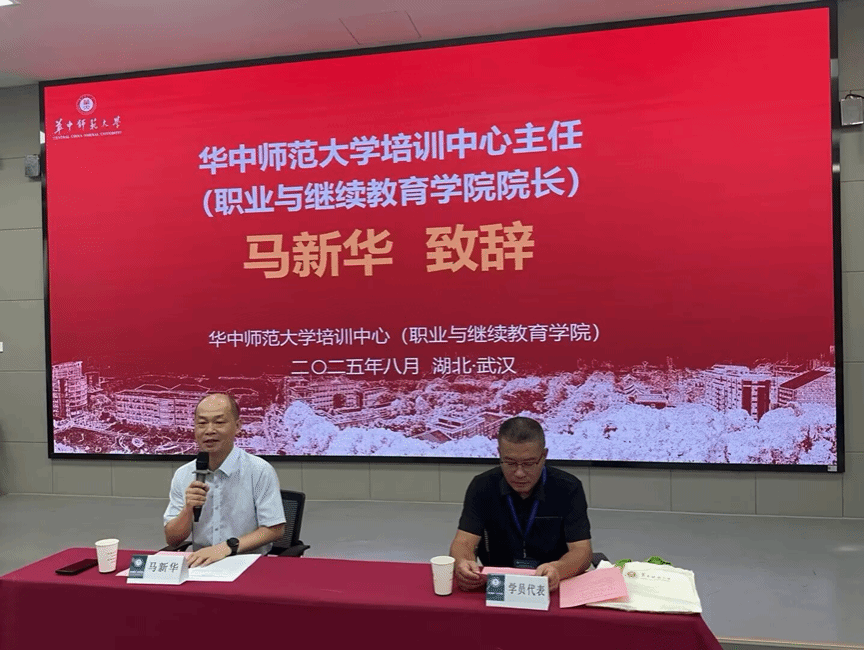 开班仪式在雄壮的国歌声中拉开帷幕。华中师范大学培训中心马新华主任向全体学员致以热烈欢迎和诚挚敬意,并介绍了华中师范大学“厚植教育情怀、锻造专业师资”的办学理念和服务区域教育均衡、提升教师队伍素养的使命任务。他指出,本次培训既是“心与心的对话”,也是“知与行的淬炼”。他希望学员迅速完成角色转换,以空杯心态投入学习,反思教育实践;深入研习理论,结合教学实际,做到学以致用;敞开心扉交流,在互学互鉴中凝聚智慧,携手成长为更加专业的“心灵引路人”。