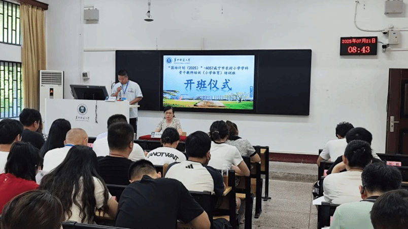 (通讯员:程珊 周敏 李千)为深入贯彻落实国家关于加强学生体育教育的决策部署,切实提升咸宁市农村小学体育教育水平,建设高素质专业化体育骨干教师队伍,2025年7月21日上午,“国培计划(2025)”——咸宁市农村小学学科骨干教师培训项目(小学体育)开班仪式在华中师范大学举行。华中师范大学培训中心副主任潘珞琳出席仪式并致辞,来自咸宁市的50名农村小学体育骨干教师参加仪式,正式开启为期10天的专业研修。