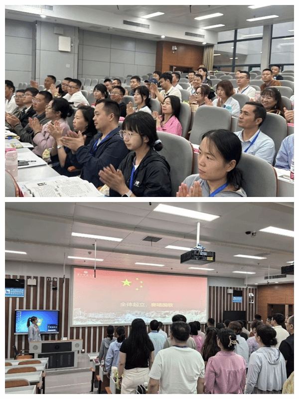 开班仪式在庄严的国歌声中拉开帷幕。华中师范大学培训中心副主任吴海涛发表热情洋溢的致辞。他首先对远道而来的新疆生产建设兵团的教育同仁们表示热烈的欢迎,并对新疆生产建设兵团教育局的信任与支持致以诚挚感谢。他回顾了华中师范大学自1903年建校以来122年的办学历史,介绍了“忠诚博雅、朴实刚毅”的华师精神,并重点分享了学校在教师教育领域的卓越成就,如学校拥有3个国家“双一流”建设学科,教育学在第五轮学科评估中获评A+等。