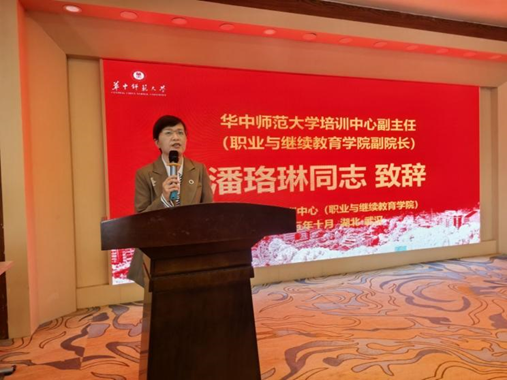 开班仪式在庄严雄壮的国歌声中拉开帷幕。华中师范大学培训中心副主任潘珞琳致欢迎辞,她对全体学员表示热烈欢迎,并寄予殷切期望。潘珞琳副主任深刻阐释了本次培训的战略意义,并介绍了华中师范大学作为国家教师教育重镇的深厚底蕴与优势资源。她强调,本次培训精准聚焦新时代基础教育改革核心理念,课程设计直指一线教学痛点与前沿动态,将围绕“新高考命题趋势与高效备课策略”、“学科核心素养下的大单元教学重构”、“数据驱动的复习备考优化路径”等关键模块,通过名家引领、案例剖析、同伴互助、实践反思等多元化研修模式,助力学员实现从“经验型”教师向“研究型、创新型”名师的战略性转变。她勉励全体学员永葆“空杯心态”,潜心问道。